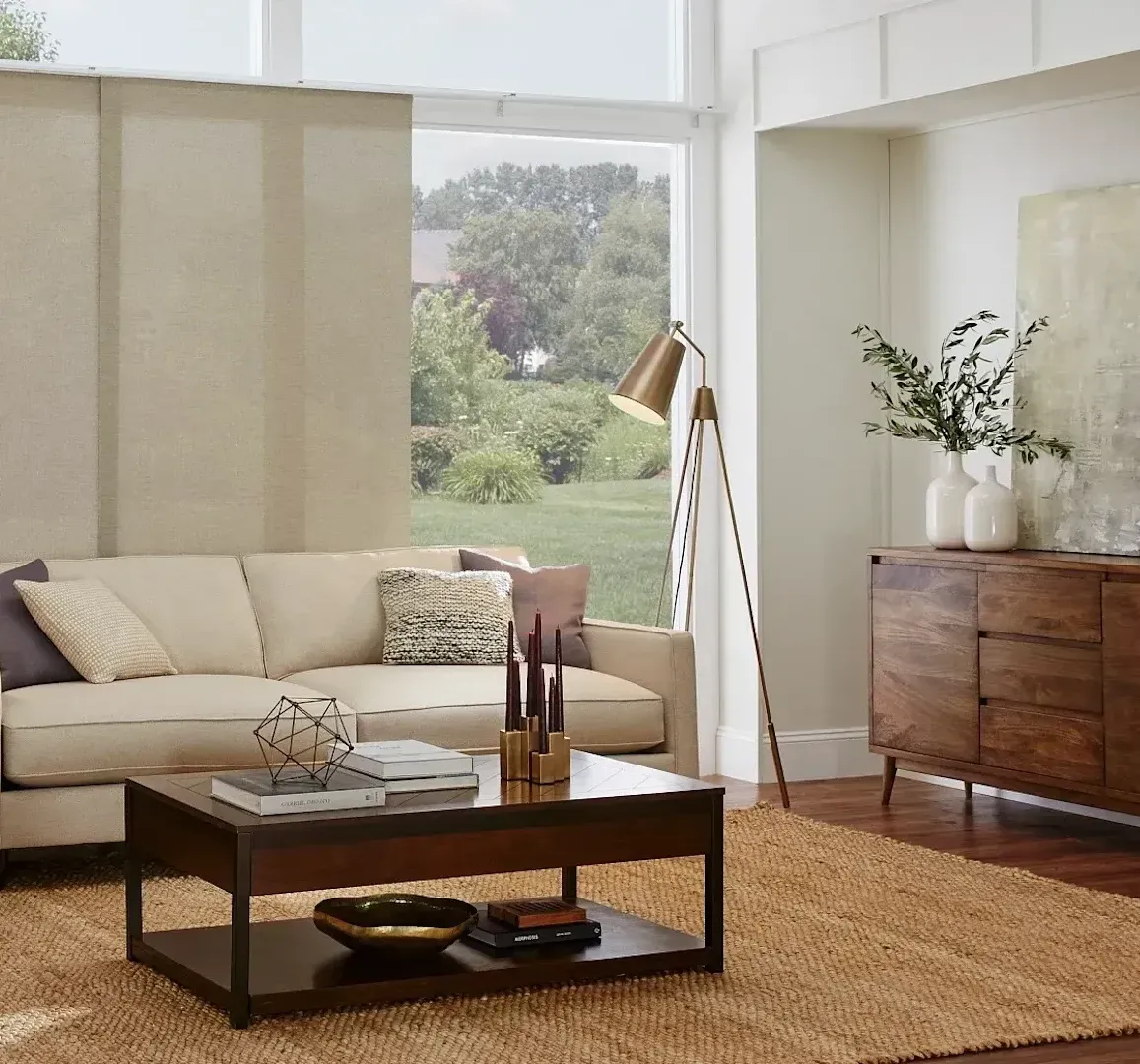 For homeowners who love a natural, organic aesthetic, woven wood shades are an excellent choice. Woven wood shades are made from sustainable materials like bamboo, grasses, and reeds, bringing warmth and texture to any space. We love recommending woven wood shades because their light-filtering properties always create a soft, inviting ambiance. Best of all, the optional liners can be added for increased privacy and light control!