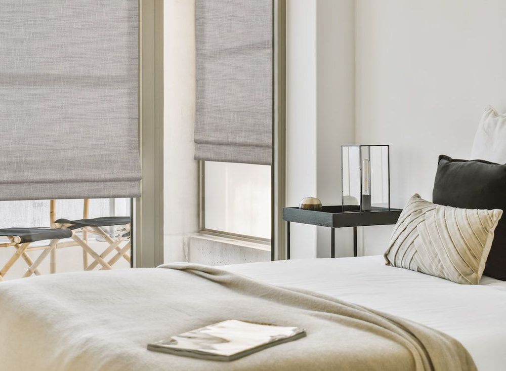 Roman shades offer timeless elegance and versatility. These soft fabric window treatments fold when raised, providing a clean, sophisticated look when lowered. Available in various fabrics, colors, and textures, Roman shades can be customized to accompany nearly any interior style.